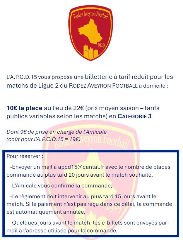 Sans limitation de durée - Billets à acheter à l'A.P.C.D.15