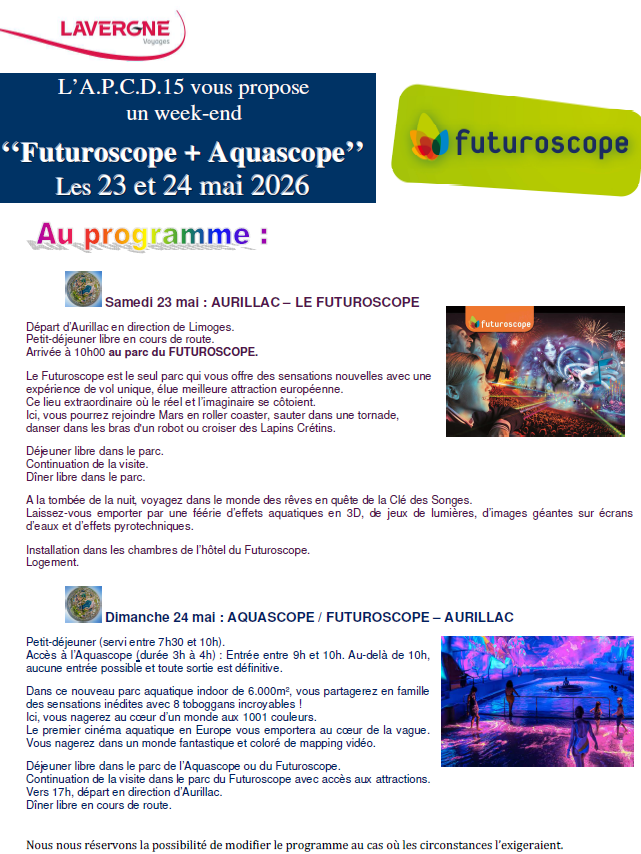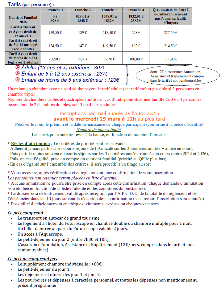 * Inscription par mail à apcd15@cantal.fr