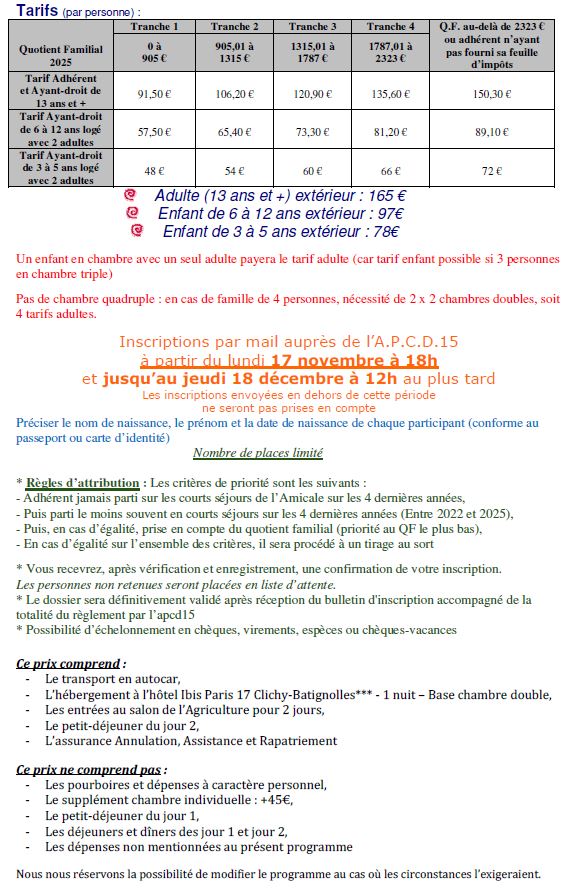 * Le dossier sera définitivement validé après réception du bulletin d'inscription accompagné de la totalité du règlement par l’apcd15